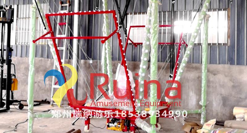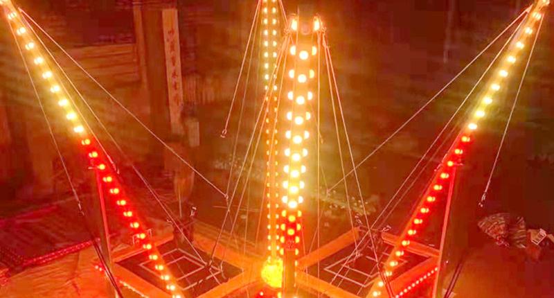 常規(guī)四人蹦極他沒有裝飾也沒有燈光的,就是四個面小孩在上面玩耍的,但是四人發(fā)光蹦極就不是這種的了,他這邊除了有豪華轉馬裝飾外,這邊還有燈光的,并且燈光的效果是出乎意料的,如果晚上經(jīng)營的話,這是一個不錯的選擇。